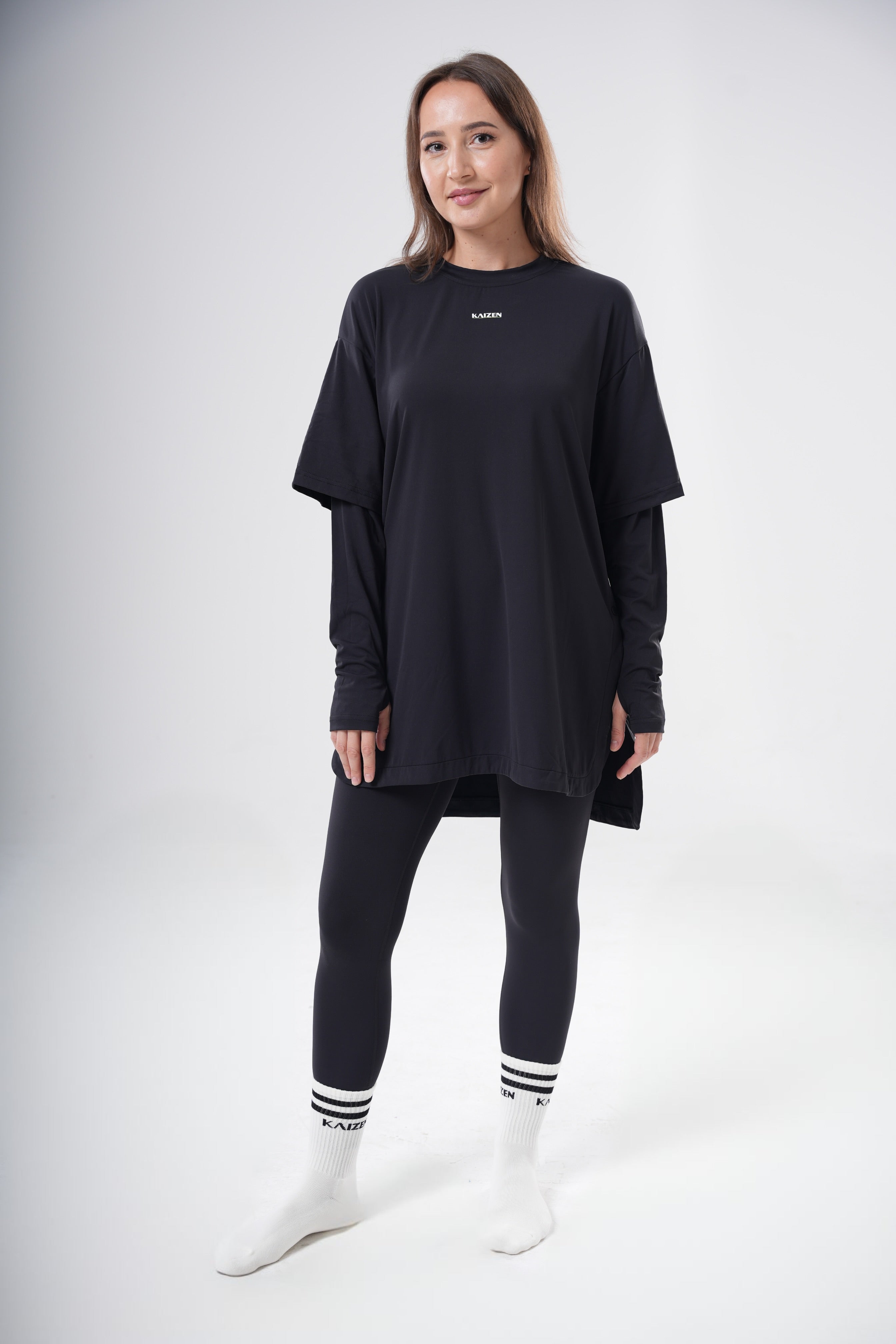 The Kaizen Snap Tee is built for athletes who demand both style and adaptability. Featuring a layered front panel with snap-button closures, it allows you to switch seamlessly between a streamlined training fit and a relaxed streetwear drape. The extended curved hem provides added coverage for full confidence in motion, while the lightweight, stretch-infused fabric ensures breathability and freedom during every workout. Designed with precision for training, travel, or lifestyle—this tee is as versatile as your grind.