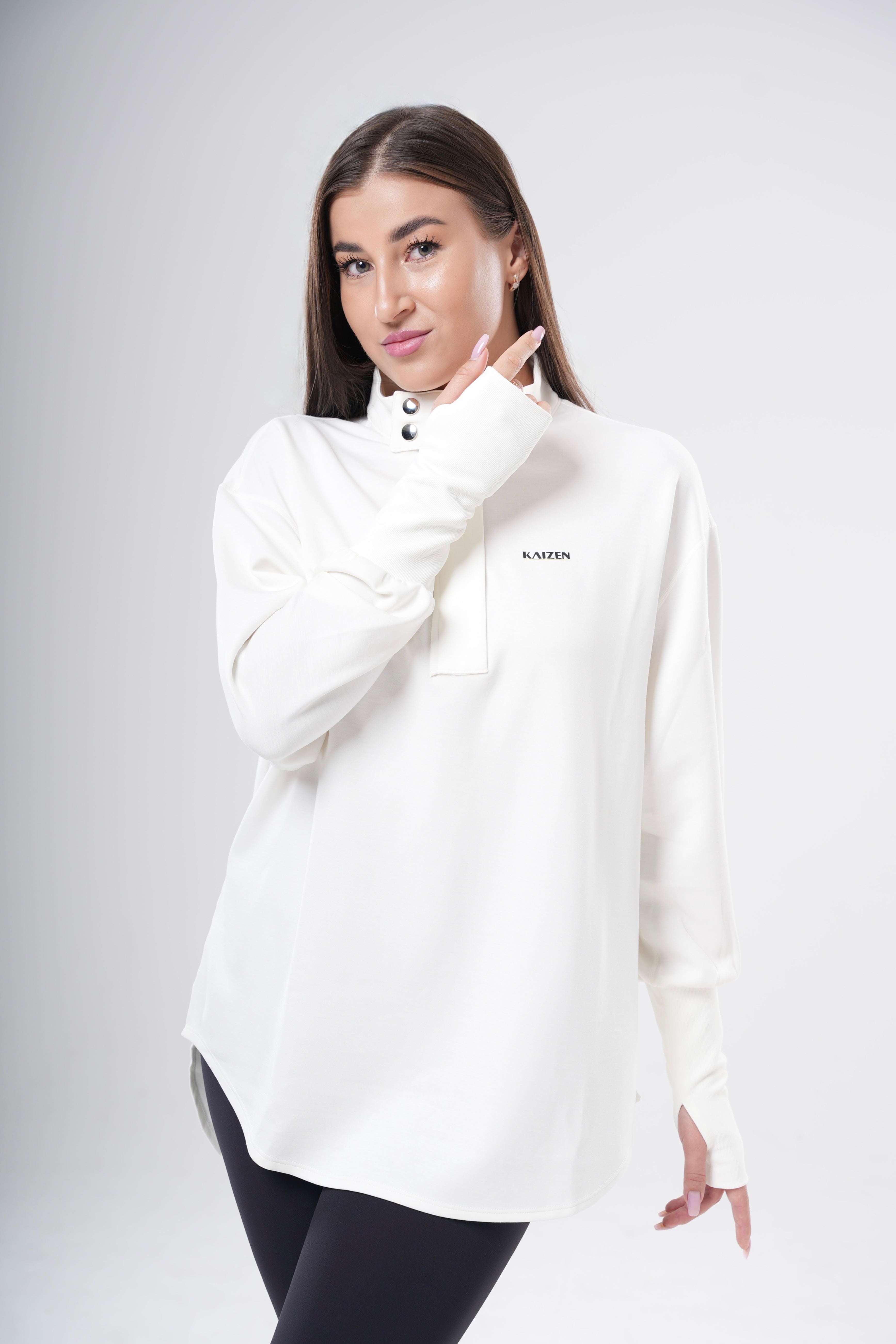Engineered for active women, the Kaizen lux flex Top combines performance with modest coverage. Featuring a high neckline, half-zip closure, and thumbhole sleeves, it delivers breathable comfort and full flexibility for training or everyday wear. Designed with modern elegance, it’s the perfect balance of style, movement, and confidence.